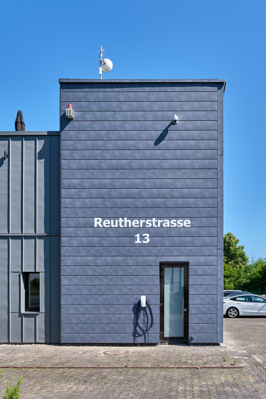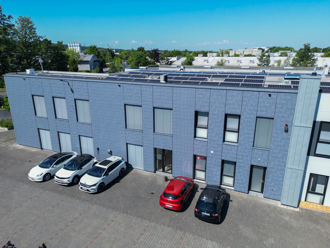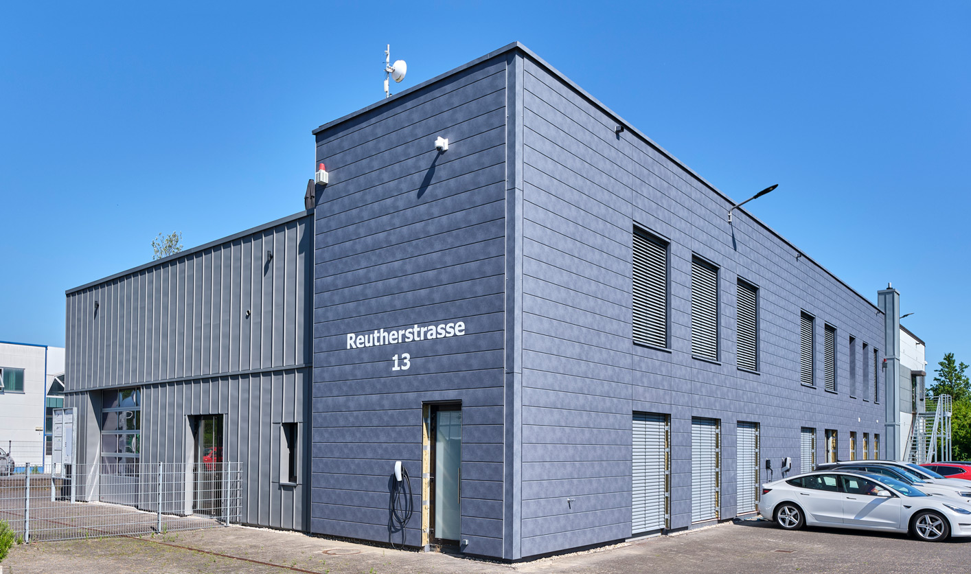 Mit dem zweiten Sanierungsschritt wurde bei der Gewerbeimmobilie in Hennef die restliche ungedämmte Außenwand energetisch ertüchtigt. Als optischen Abschluss erhielt die vorgehängte hinterlüftete Fassade PREFA Siding-Elemente in steingrau.